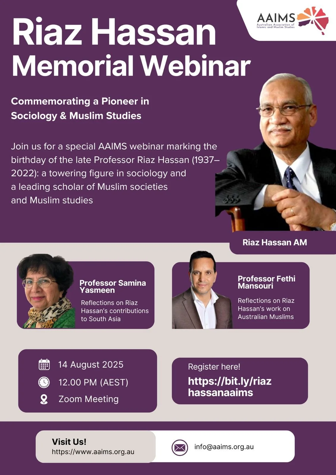 You are warmly invited to join Fethi in a special webinar commemorating Professor Riaz Hassan, organised by AAIMS.